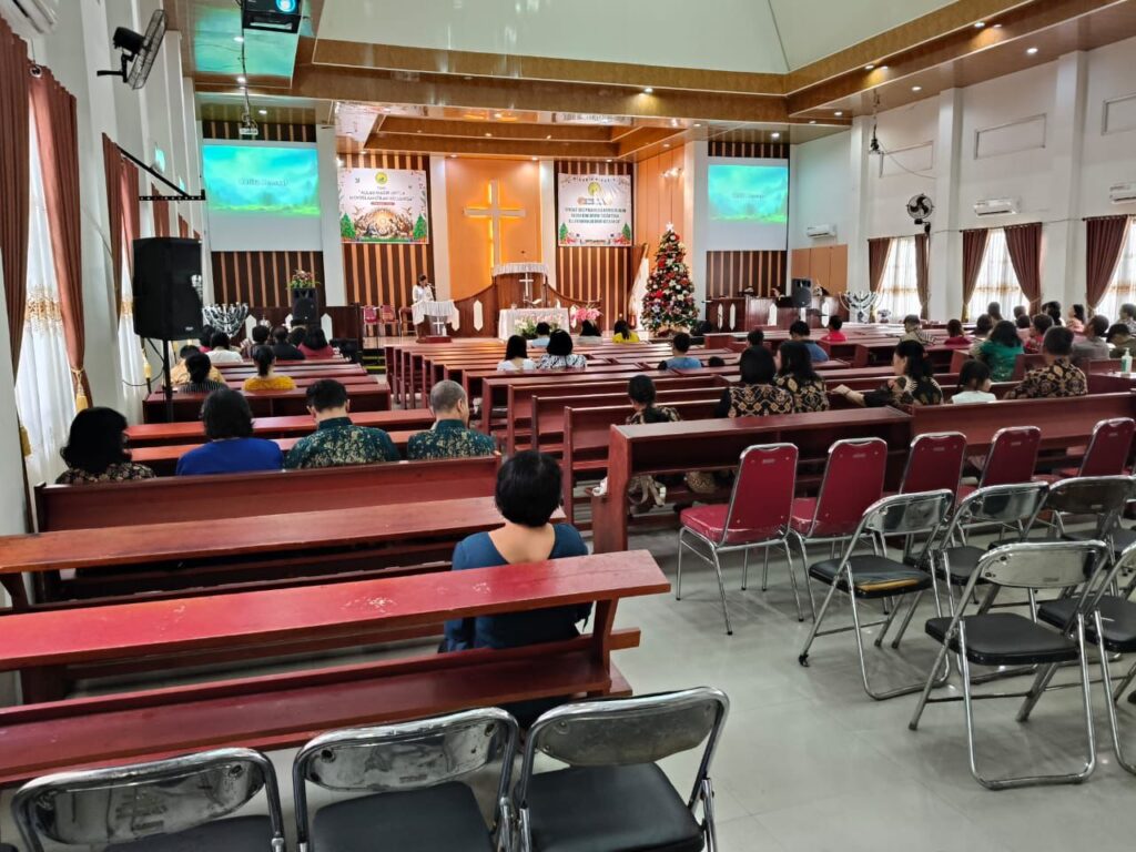 Ibadah Tahun Baru tersebut dipimpin oleh Pendeta Ayang Setiawan, M.Th., dan Pendeta Novaria Banjar Nahor, S.Th., dengan diikuti sekitar 100 orang jemaat.