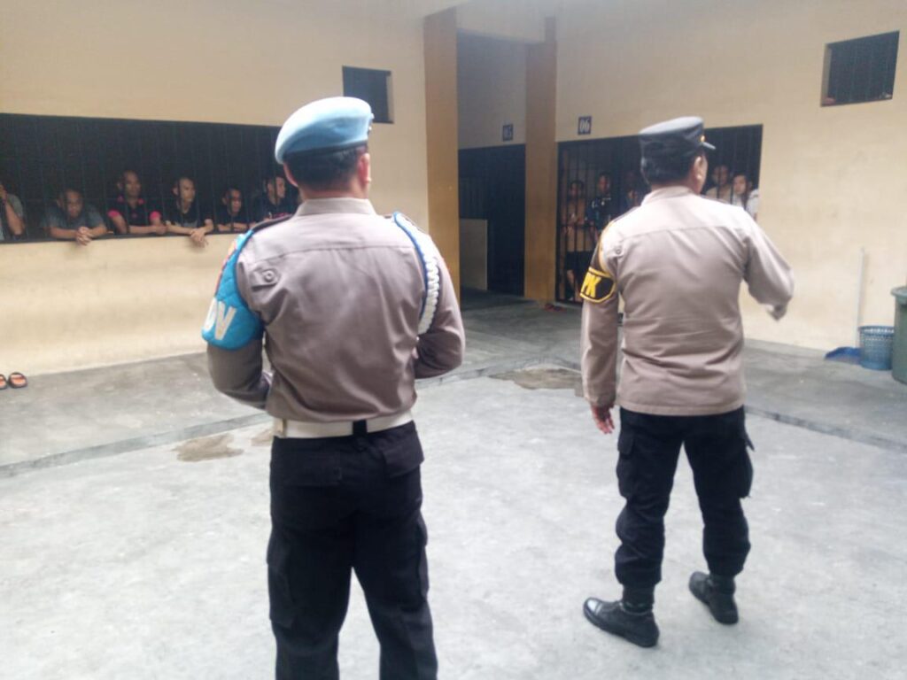 Dalam pemeriksaan tersebut, petugas mengecek jumlah tahanan, kondisi fisik mereka, serta kebersihan ruang tahanan.