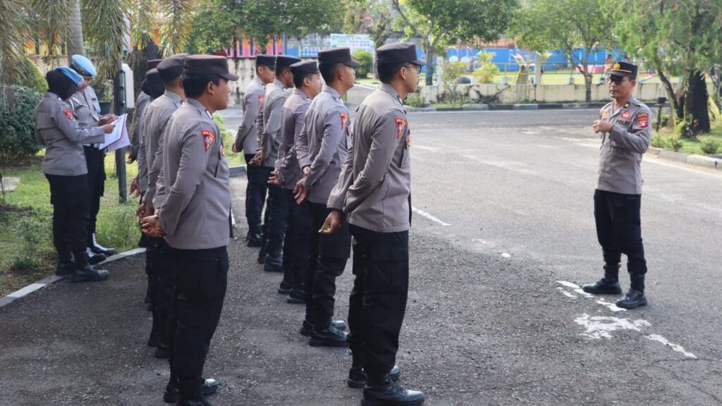 Waspers dilakukan dengan mengecek absensi personel dari setiap satfung saat pelaksanaan apel di lapangan Mapolresta Palangka Raya, Jalan Tjilik Riwut Km. 3,5, Kota Palangka Raya, Kalimantan Tengah, Rabu (8/10/2025) pagi.