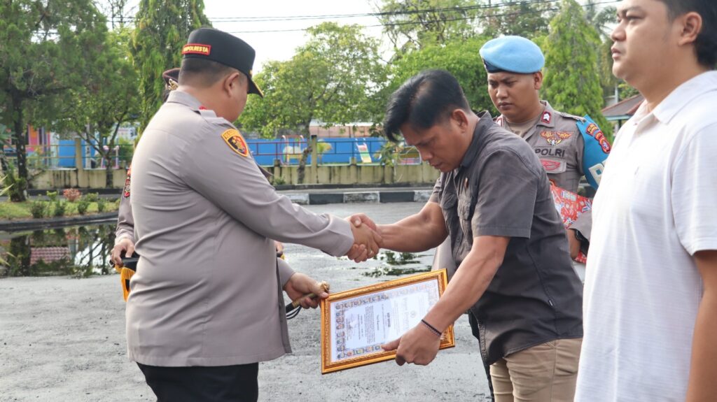 “Pemberian penghargaan ini merupakan bentuk apresiasi institusi kepada anggota yang berprestasi, sekaligus motivasi bagi seluruh personel untuk terus bekerja dengan semangat, profesional, dan penuh tanggung jawab,” tutur Kapolresta.