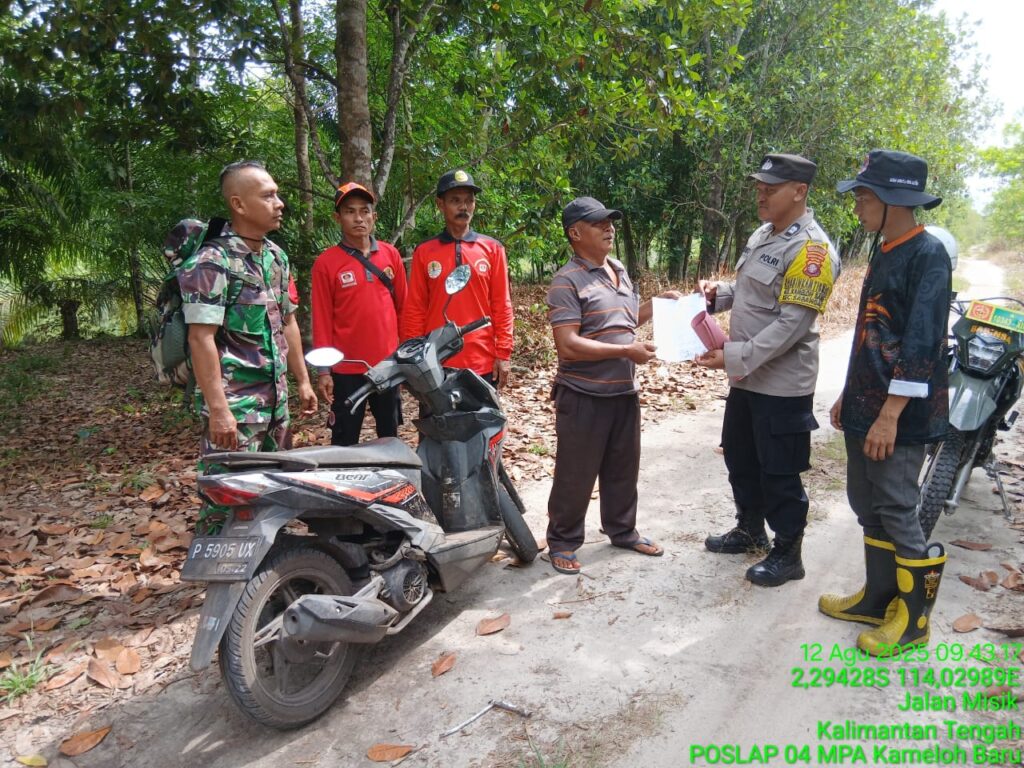 Palangka Raya – Bhabinkamtibmas Kelurahan Kameloh Baru Polsek Sabangau Polresta Palangka Raya, Aiptu Supriyanto, bersama Babinsa dan anggota Tim Siaga Api Kelurahan Kameloh Baru (TSAK) melaksanakan patroli pengendalian kebakaran hutan dan lahan (karhutla), Selasa (12/8/2025).