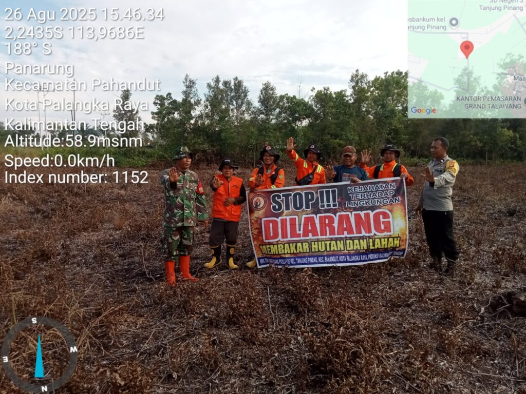 Kapolresta, Kombes Pol. Dedy Supriadi, S.I.K., M.H. melalui Kapolsek Pahandut, Kompol Volvy Apriana menjelaskan, upaya pencegahan dilakukan Aipda Nur Rohim bersama Masyarakat Peduli Api (MPA) dan Babinsa TNI dengan mengingatkan larangan membakar lahan.