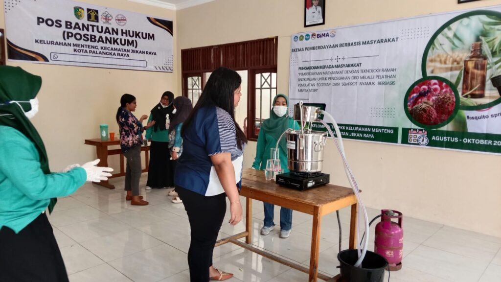 Adapun kegiatan berupa pelatihan pembuatan Bootrap dan semprot nyamuk berbasis minyak atsiri, yang digagas oleh Tim Penggerak PKK Kelurahan Menteng bekerjasama dengan mahasiswa Universitas Palangka Raya melalui program Hibah Kemendikbudristek Saintek 2025.