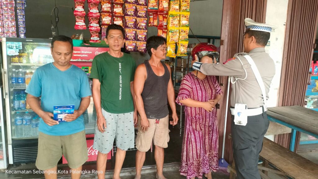 Pembagian helm dilakukan pada sejumlah titik strategis di wilayah Kota Palangka Raya, Kalimantan Tengah, salah satunya yakni kepada masyarakat yang dijumpai di kawasan Jalan Mahir Mahar Km. 15, Kamis (16/4/2026) siang.