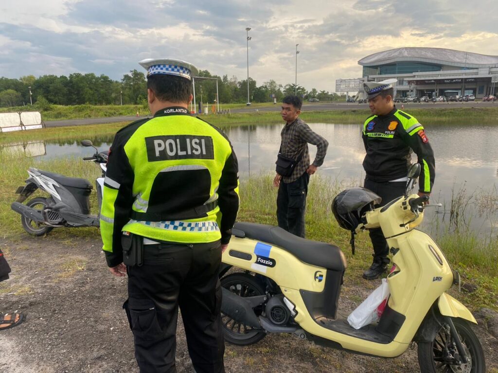 Salah satunya dengan melakukan patroli yang dilaksanakan oleh para personel Satlantas, kali ini pada area Bandara Tjilik Riwut di kawasan Jalan Adonis Samad, Kota Palangka Raya, Kalimantan Tengah, Minggu (19/4/2026) sore.