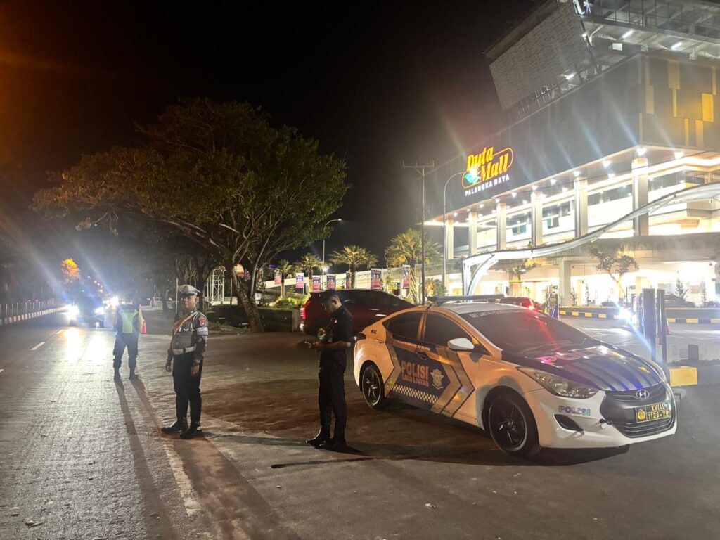Palangka Raya – Satuan Lalu Lintas Polresta Palangka Raya melaksanakan kegiatan pengamanan sekaligus pengaturan arus lalu lintas di kawasan Duta Mall Palangka Raya, Senin (1/12/2025) malam.