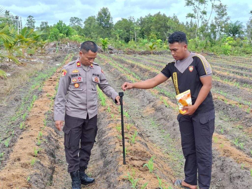 Palangka Raya – Upaya mendukung ketahanan pangan terus dilakukan jajaran Polsek Rakumpit Polresta Palangka Raya melalui kegiatan monitoring dan pendampingan perawatan tanaman jagung di lahan Kelompok Tani Elea Farm.