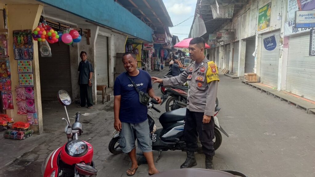 Dalam pelaksanaannya, Bhabinkamtibmas menyusuri area pasar sambil berdialog dengan para pedagang dan pengunjung.