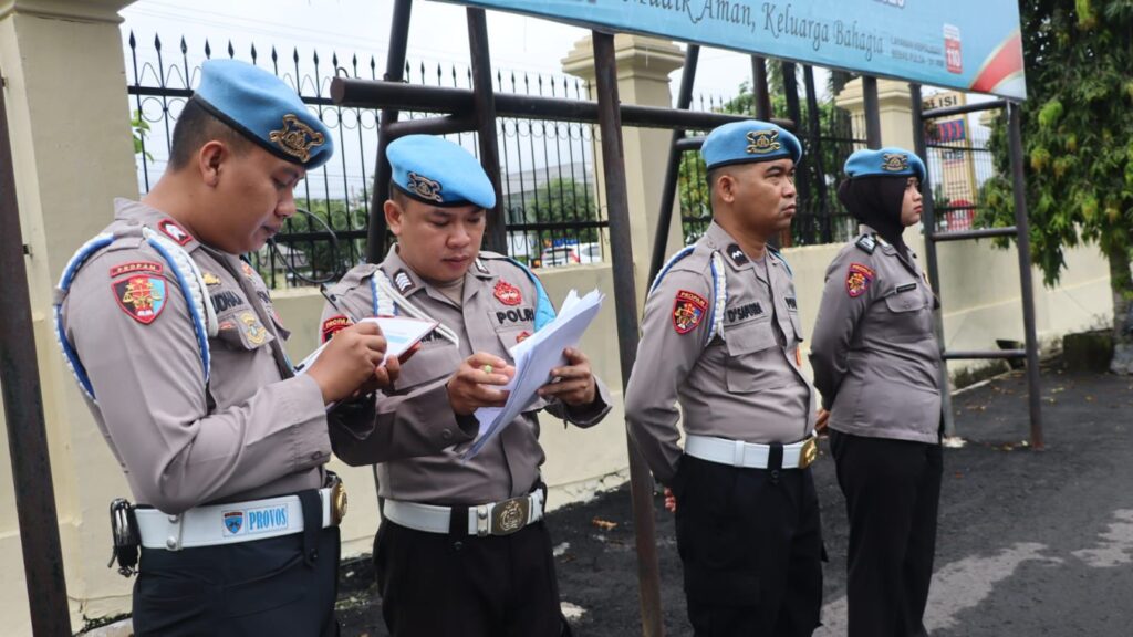 Dalam kegiatan itu, personel Propam melakukan pemeriksaan langsung terhadap daftar absensi harian, sekaligus memantau kesiapan anggota sebelum mengikuti apel pagi.
