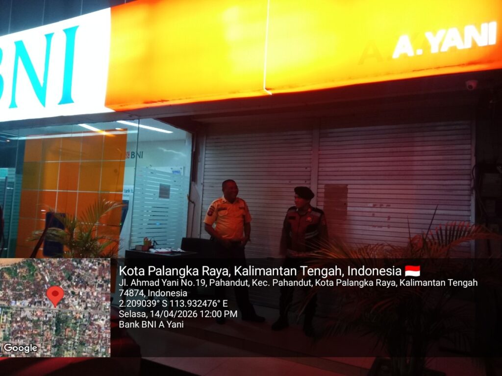 Palangka Raya – Personel Satuan Samapta (Satsamapta) Polresta Palangka Raya melaksanakan patroli ke kantor perbankan, salah satunya Bank BNI di wilayah Kota Palangka Raya.