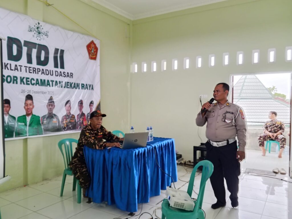 Palangka Raya – Satuan Lalu Lintas (Satlantas) Polresta Palangka Raya berkolaborasi dengan organisasi kepemudaan dalam upaya meningkatkan kesadaran keselamatan berlalu lintas dengan menjadi pemateri pada kegiatan Diklat Terpadu Dasar (DTD) II Pimpinan Anak Cabang (PAC) GP Ansor Kecamatan Jekan Raya Tahun 2025.