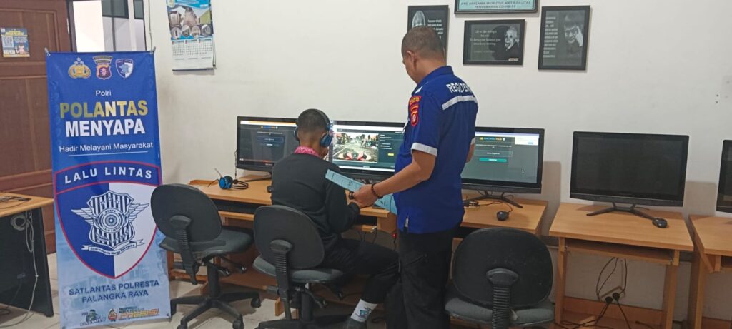 Palangka Raya – Dalam rangka menumbuhkan kesadaran masyarakat tentang pentingnya disiplin di jalan raya, personel Penguji Teori Satpas Satlantas Polresta Palangka Raya melaksanakan kegiatan Polantas Menyapa dengan memberikan sosialisasi dan edukasi tertib berlalu lintas kepada para peserta ujian teori Surat Izin Mengemudi (SIM), Rabu (15/10/2025) pagi.