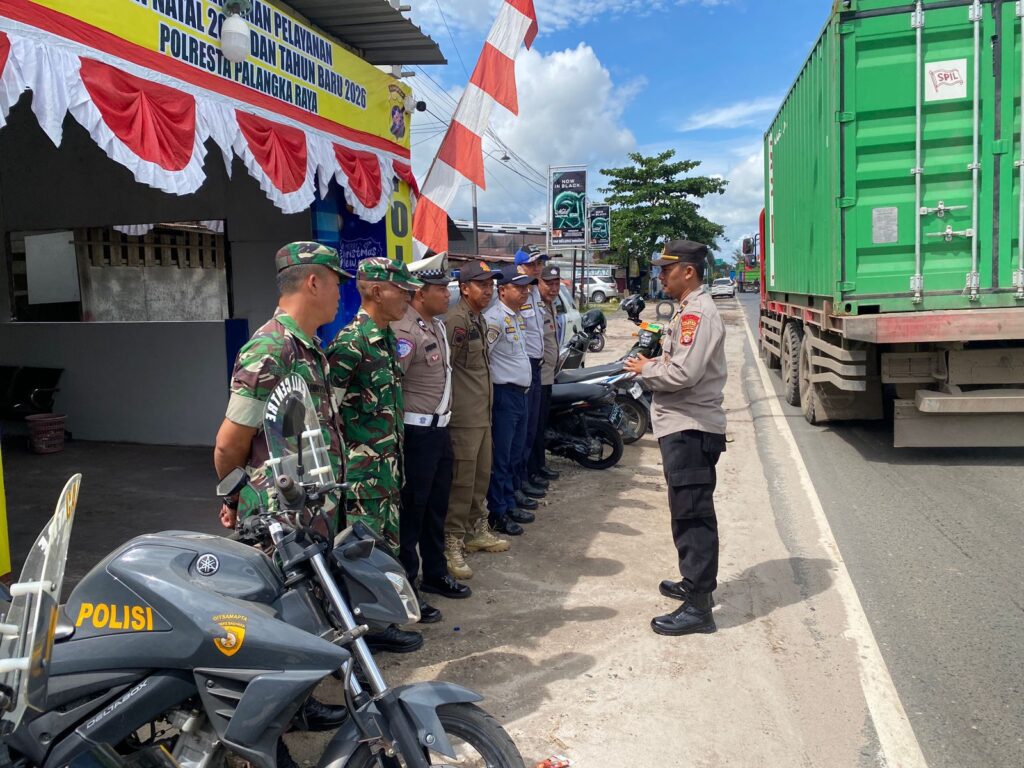 Palangka Raya – Personel Pos Pengamanan Operasi Lilin Telabang 2025 Polresta Palangka Raya melaksanakan apel pagi dan siaga pengamanan di Pos Pam Jalan Mahir Mahar, Kota Palangka Raya, Selasa (23/12/2025).