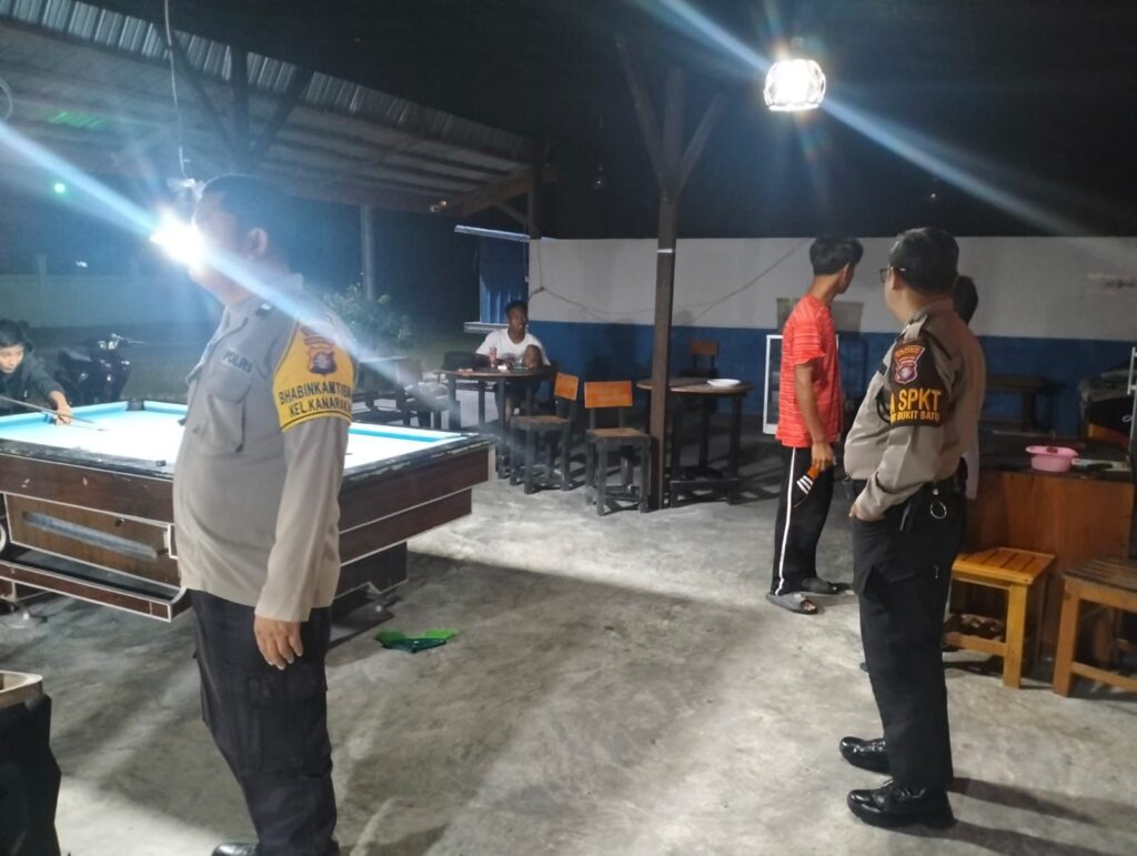 Patroli dilakukan oleh personel piket Polsek Bukit Batu dengan menyambangi area biliar dan berdialog dengan pengunjung maupun pengelola tempat usaha.