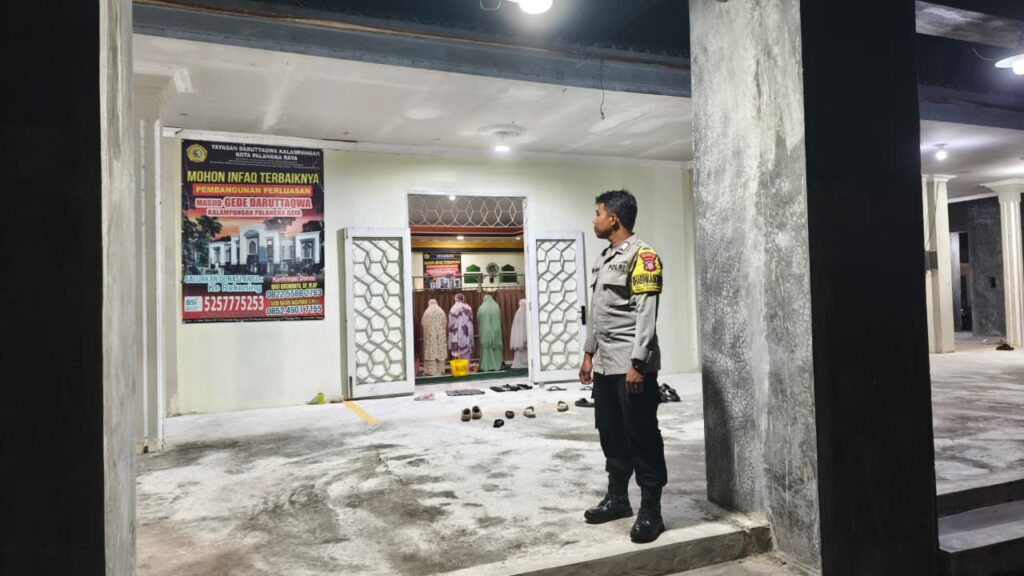 Palangka Raya – Personel Polsek Sabangau Polresta Palangka Raya melaksanakan pengamanan Salat Tarawih di Masjid Gede Daruttaqwa, Kelurahan Kalampangan, Kecamatan Sabangau, guna memastikan situasi kamtibmas tetap aman dan kondusif bagi jamaah.