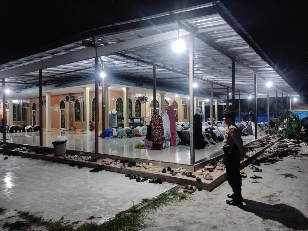 Palangka Raya – Personel Polresta Palangka Raya melaksanakan pengamanan kegiatan ibadah Salat Tarawih di Masjid Salahuddin, Jalan Yos Sudarso, sebagai bentuk pelayanan kepolisian dalam menjaga situasi kamtibmas tetap aman dan kondusif selama masyarakat menjalankan ibadah malam Ramadan.