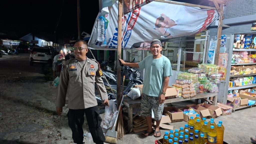 Palangka Raya – Anggota Polsek Bukit Batu, Polresta Palangka Raya, melaksanakan patroli harkamtibmas sekaligus sambang ke Pasar Rakyat Jalan Pangkalima Jaya, Kelurahan Tangkiling, Kecamatan Bukit Batu.