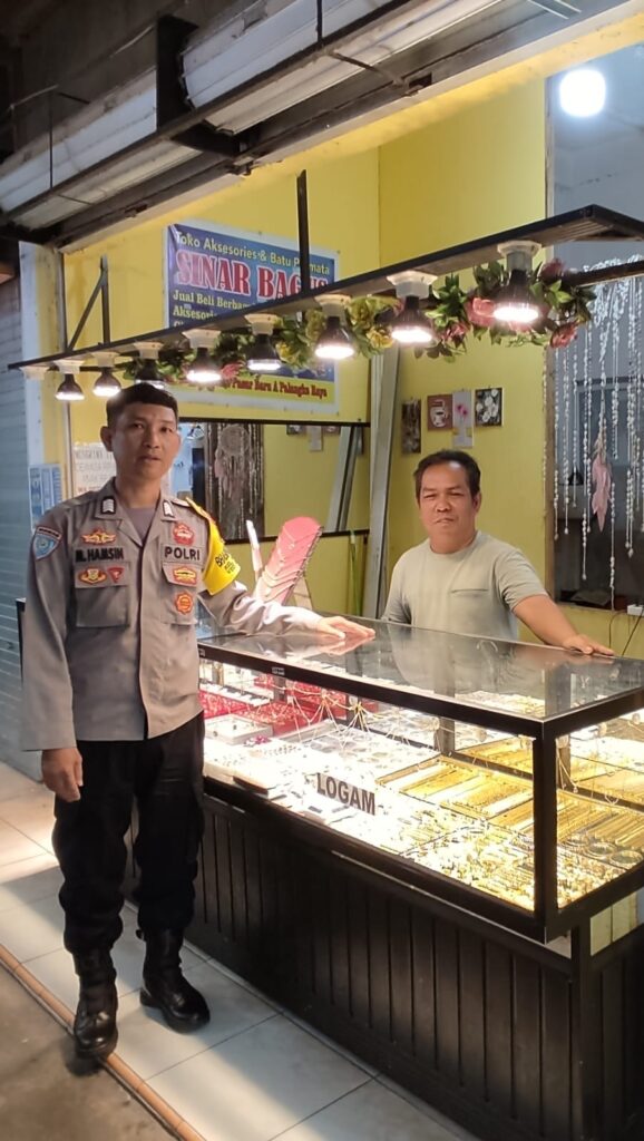 Patroli di Komplek Pasar Besar, Bhabinkamtibmas Pahandut Ingatkan Waspada Tindak Kriminalitas - mediaborneo-one.com