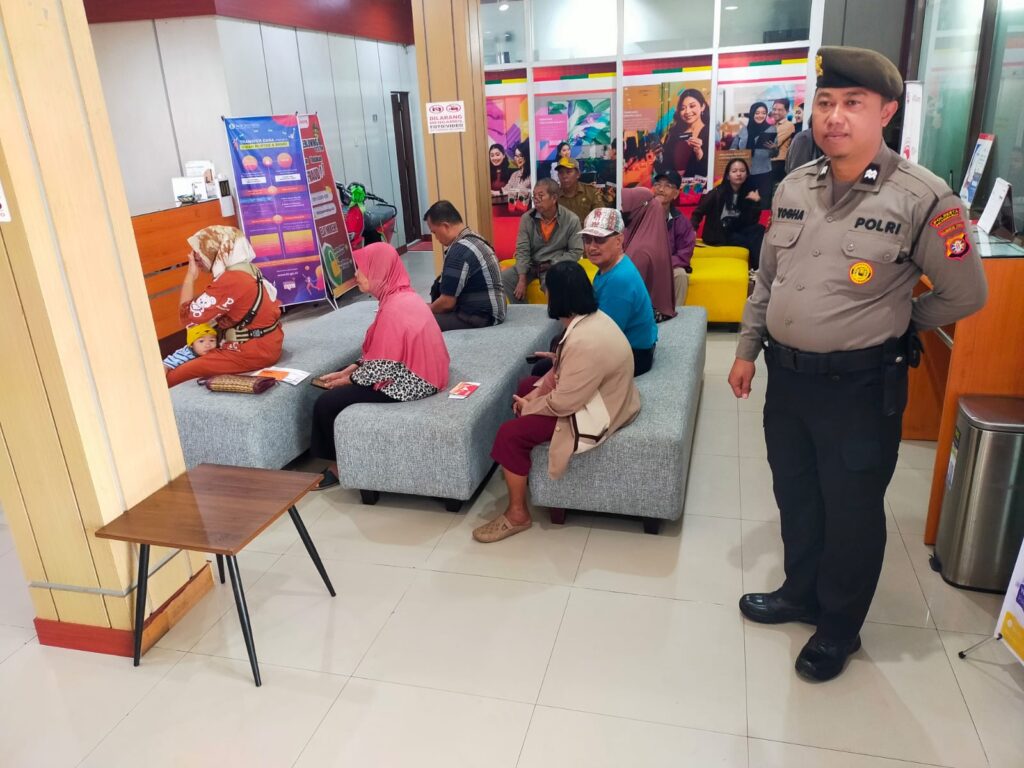 Pengamanan tersebut dilaksanakan dengan menempatkan personel pada titik-titik strategis, mulai dari area pelayanan nasabah, akses keluar masuk gedung, hingga lokasi parkir kendaraan guna mencegah potensi gangguan kamtibmas.