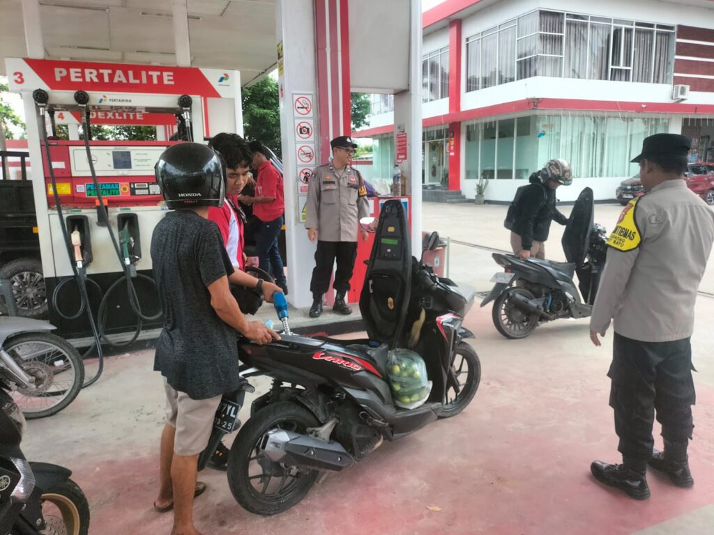 Dalam kesempatan itu, petugas berdialog dengan operator SPBU dan memberikan imbauan agar selalu waspada terhadap potensi gangguan kamtibmas.