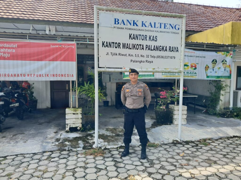 Palangka Raya – Personel Satpamobvit Polresta Palangka Raya melaksanakan kegiatan pemantauan keamanan di sejumlah bank di wilayah Kota Palangka Raya, Senin (10/11/2025).