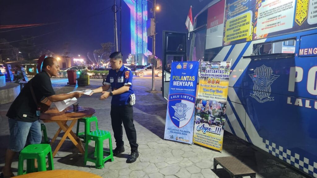 Palangka Raya – Dalam rangka meningkatkan pelayanan publik serta mendekatkan diri dengan masyarakat, Satuan Penyelenggara Administrasi SIM (Satpas) Satlantas Polresta Palangka Raya kembali melaksanakan kegiatan “Polantas Menyapa” melalui layanan SIM Keliling BBM (Bundaran Besar Melayani), pada Sabtu malam (11/10/2025).