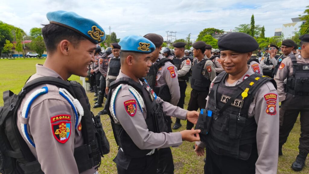Apel kesiapan digelar pada lapangan Mapolda Kalteng, Jalan Tjilik Riwut Km. 1, Kota Palangka Raya, Kalimantan Tengah, yang dipimpin oleh Kabagops, Kompol Permadi selaku koordinator tugas pam, Selasa (16/9/2025) siang.