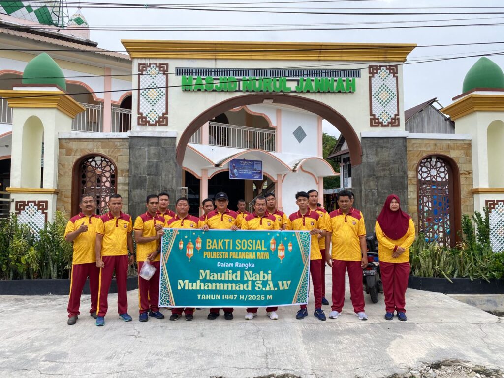 Palangka Raya – Dalam rangka menyambut Maulid Nabi Besar Muhammad SAW 1447 H, Polresta Palangka Raya menggelar kegiatan bakti sosial dengan membersihkan tempat ibadah di sekitar lingkungan Polresta, Jumat (22/8/2025).