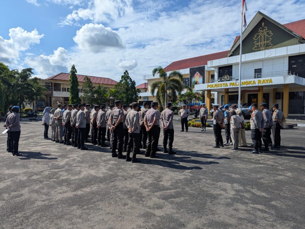 Apel sore digelar mulai pukul 14.30 WIB di Mapolresta Palangka Raya, Jalan Tjilik Riwut Km. 3,5, Kota Palangka Raya, Kalimantan Tengah, yang dipimpin oleh Wakasatlantas, Iptu Eko Hermawan, Kamis (16/4/2026) sore.