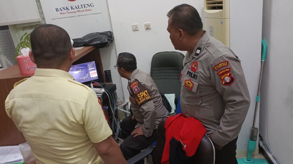 Palangka Raya – Guna memastikan keamanan di sektor perbankan, personel Polsek Bukit Batu Polresta Palangka Raya melaksanakan pengecekan sistem keamanan, termasuk kamera pengawas (CCTV) di Kantor Bank Kalteng Unit Tangkiling.
