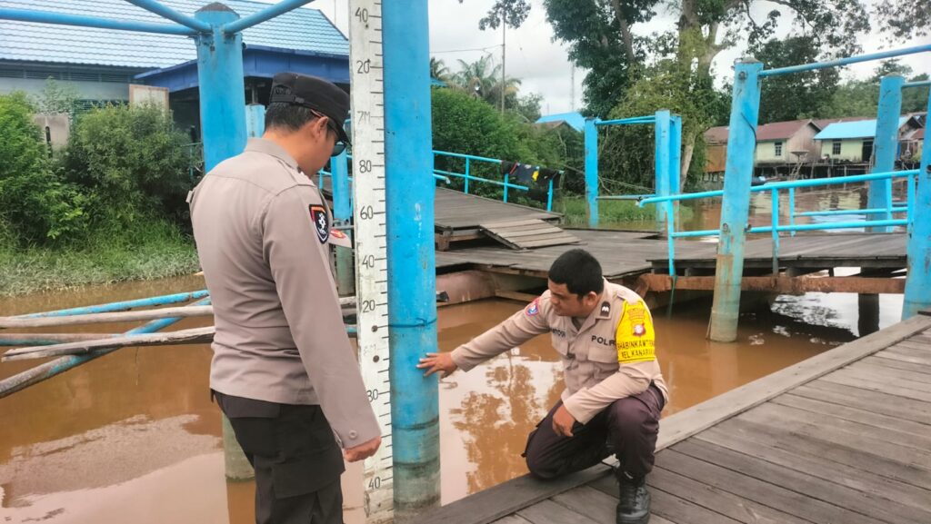 Palangka Raya – Menyikapi meningkatnya curah hujan dalam beberapa hari terakhir, Polsek Bukit Batu melakukan monitoring ketinggian debit air Sungai Rungan di dermaga Jalan Pangkalima Jaya, Kelurahan Tangkiling, Kecamatan Bukit Batu, Senin (8/12/2025).