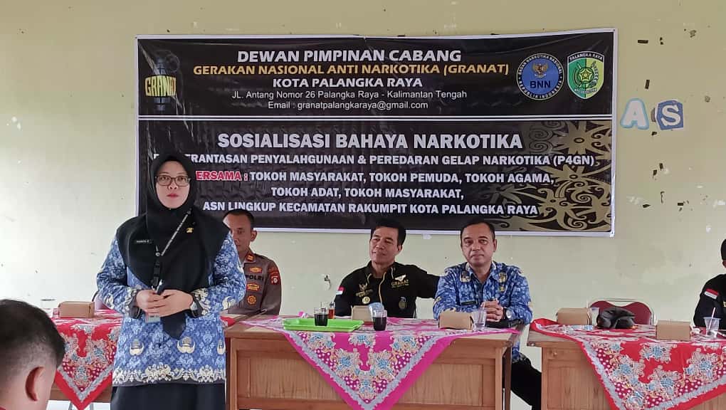 Palangka Raya – Polsek Rakumpit Polresta Palangka Raya menghadiri kegiatan sosialisasi bahaya narkoba yang diselenggarakan oleh DPC Granat Kota Palangka Raya di Balai Basara Kelurahan Pager, Kecamatan Rakumpit, Jumat (17/10/2025).