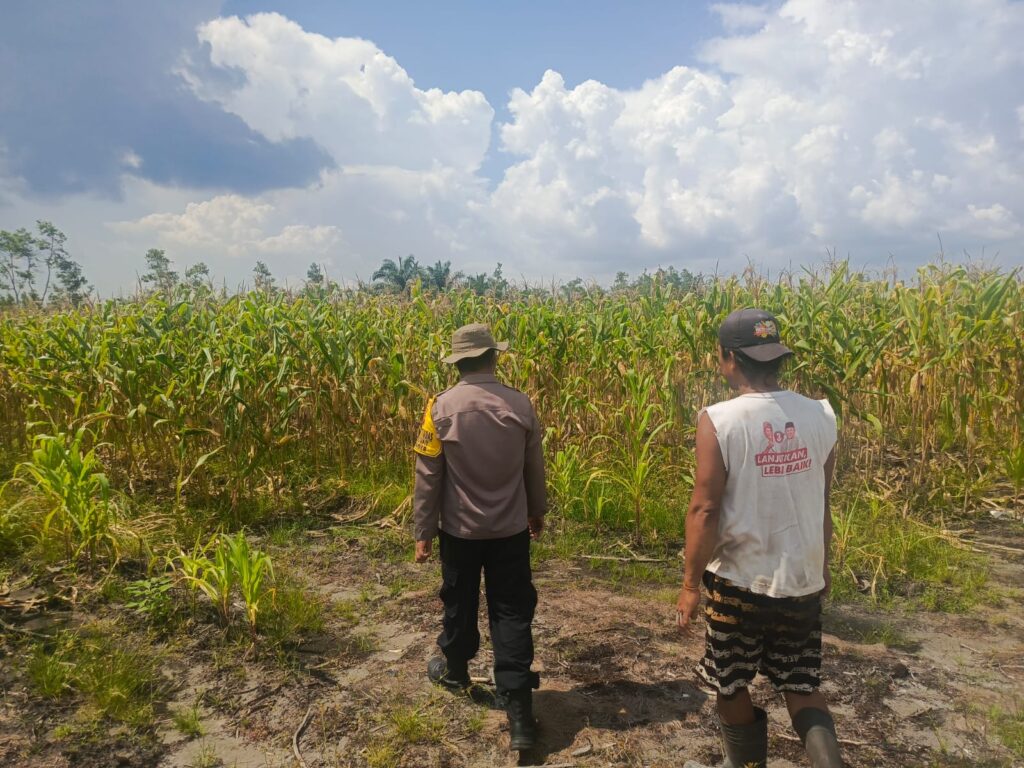 Palangka Raya – Dalam rangka memastikan pertumbuhan tanaman jagung berjalan maksimal, personel Polsek Rakumpit Polresta Palangka Raya melaksanakan pendampingan kepada Kelompok Tani Elea Farm di Kelurahan Pager, Kecamatan Rakumpit, Senin (13/10/2025).
