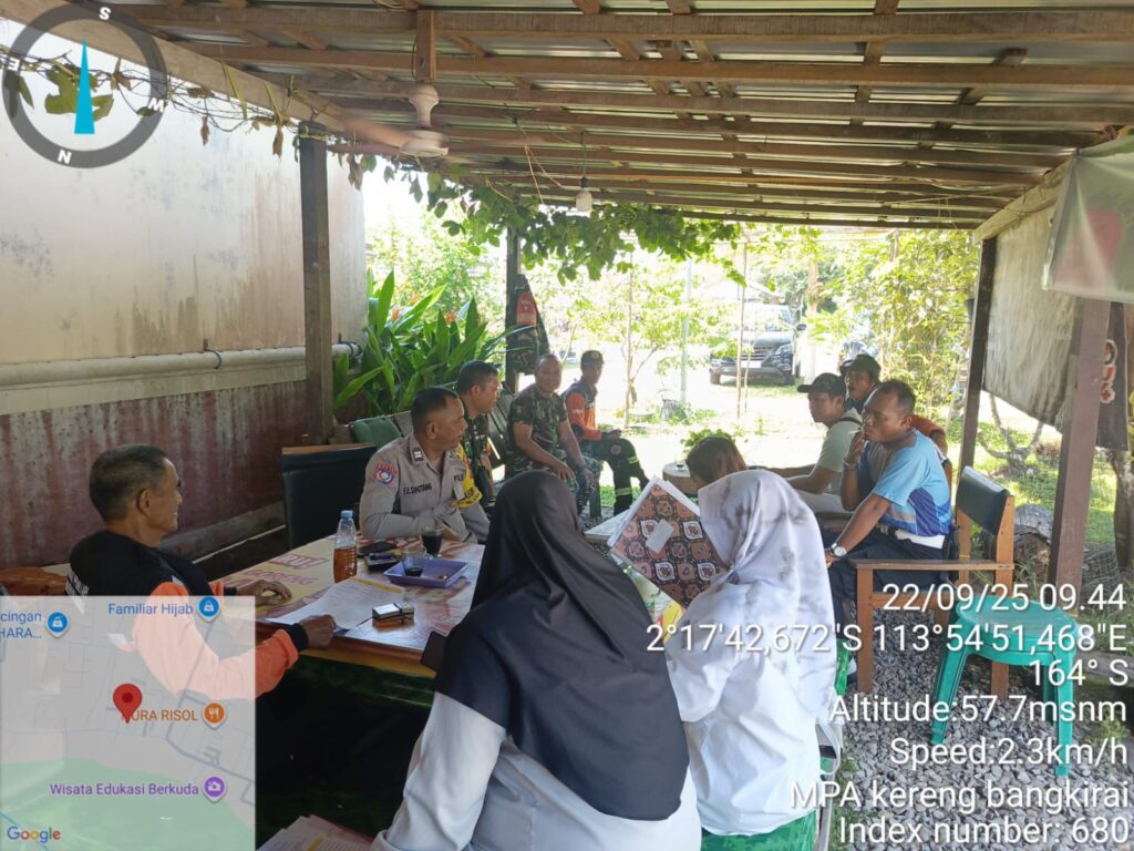 Senin (22/9/2025), Bhabinkamtibmas Kelurahan Kereng Bangkirai Aiptu F.E. Sihotang melaksanakan pendampingan patroli pengendalian karhutla bersama Masyarakat Peduli Api (MPA) di wilayah setempat.