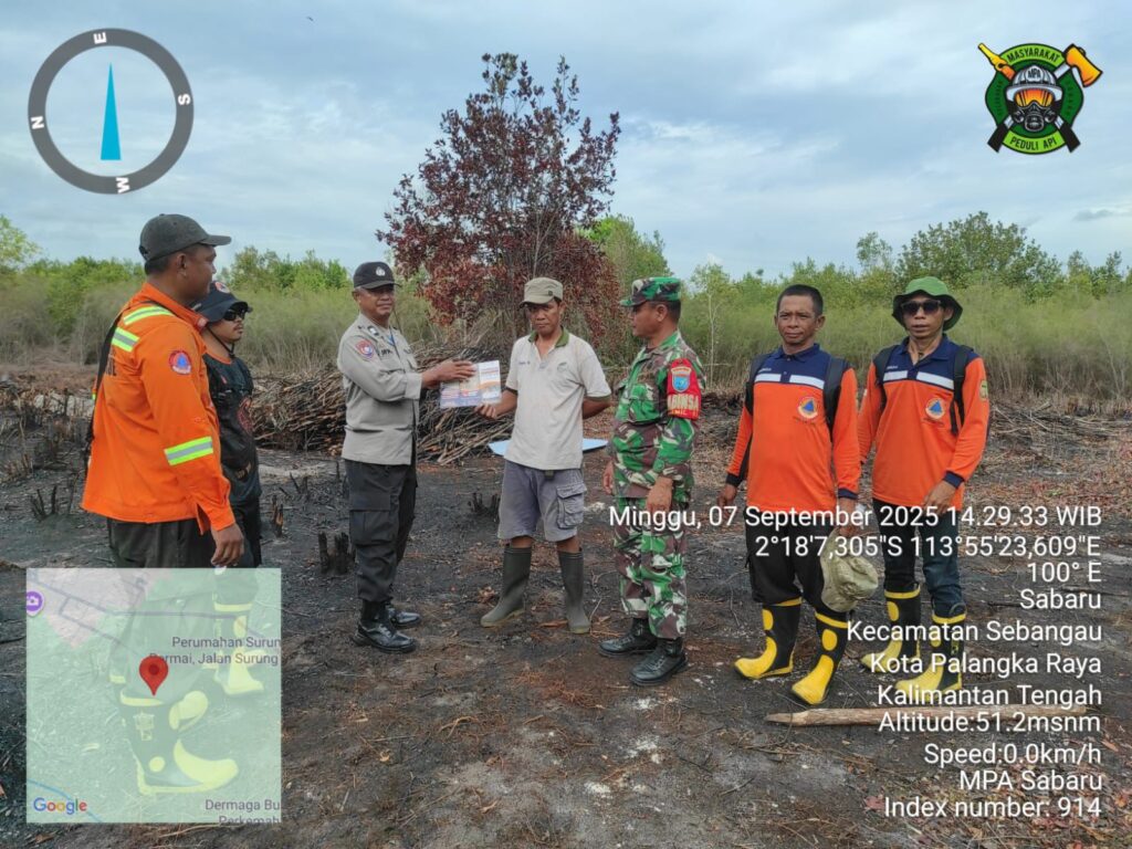 Palangka Raya – Polsek Sabangau Polresta Palangka Raya bersama Tim Serbu Api Kelurahan (TSAK) melaksanakan patroli pengendalian kebakaran hutan dan lahan (karhutla) di wilayah Kelurahan Sabaru, Kecamatan Sabangau, Minggu (7/9/2025).
