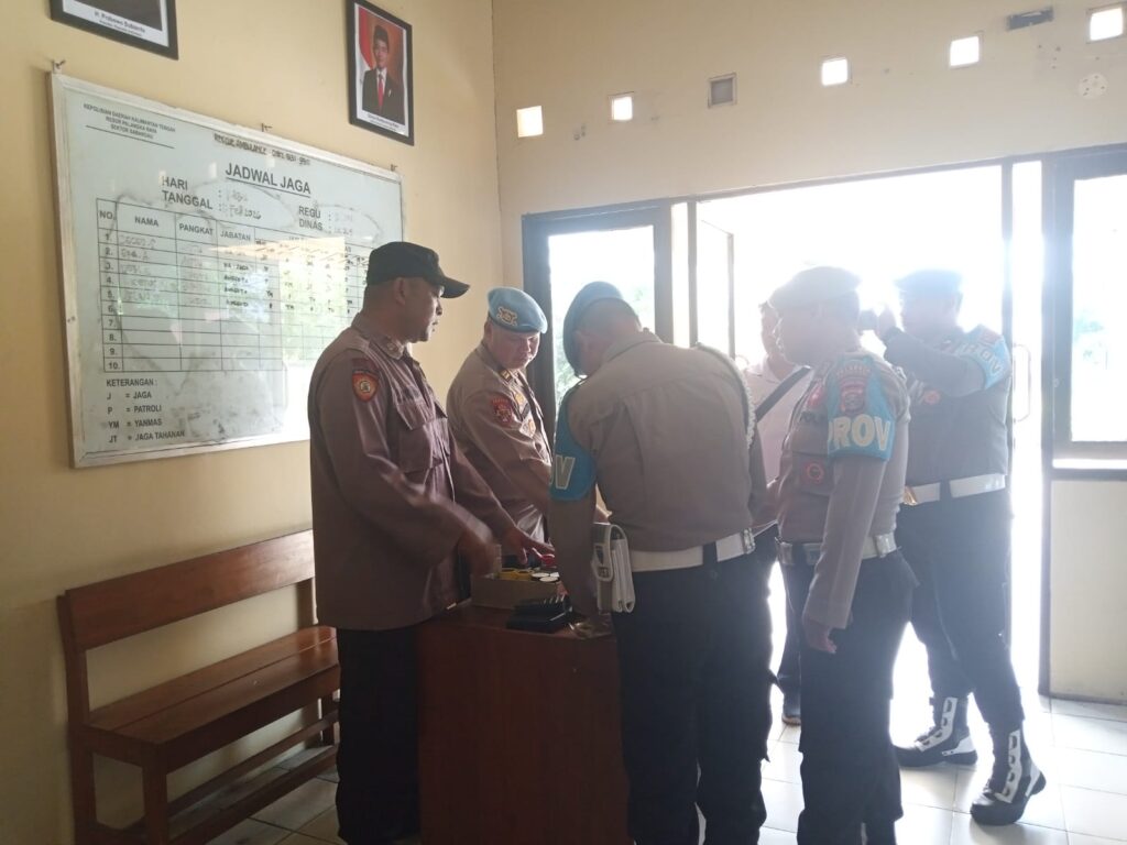 Kegiatan tersebut meliputi pemeriksaan kelengkapan data diri anggota, pengecekan kebersihan dan kelengkapan senjata api dinas, serta pelaksanaan tes urine sebagai bentuk pengawasan internal guna menjaga disiplin dan profesionalitas personel.