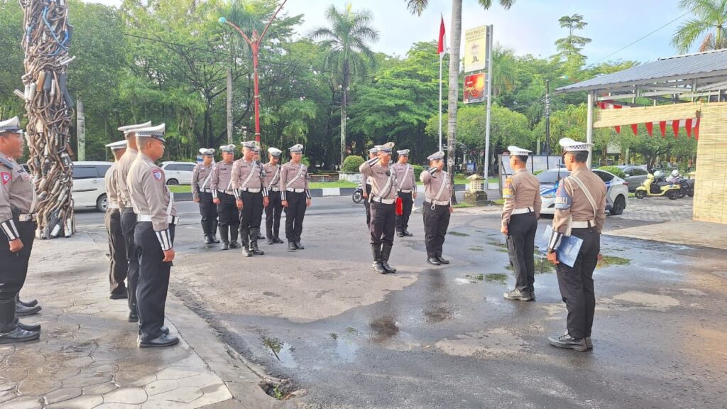 Palangka Raya – Satuan Lalu Lintas Polresta Palangka Raya menggelar apel pagi personel di depan Pospol Bundaran Besar Palangka Raya, Selasa (2/12/2025) pukul 05.30 WIB. Kegiatan apel dipimpin langsung oleh Kanit Turjawali, Ipda Dedi Hendra Kurniawan, S.H., M.M.