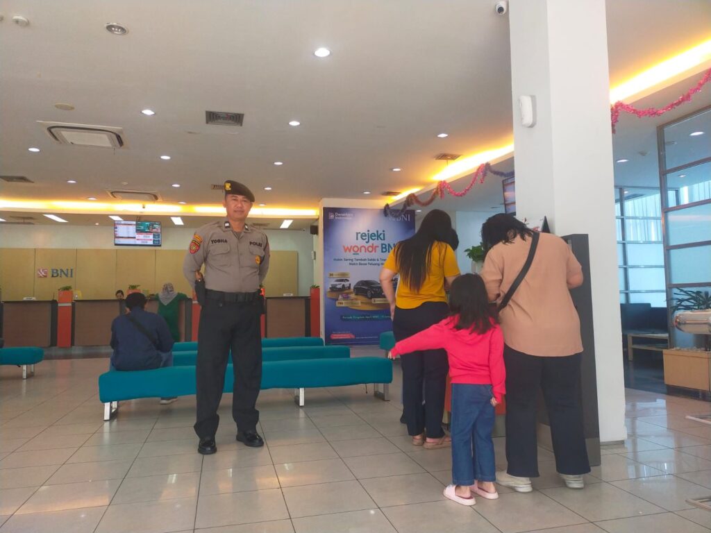 Palangka Raya – Dalam upaya menjaga keamanan di lingkungan perbankan, personel Satuan Pengamanan Objek Vital (Satpamobvit) Polresta Palangka Raya memberikan imbauan kepada masyarakat agar selalu berhati-hati saat melakukan transaksi, Rabu (17/12/2025).