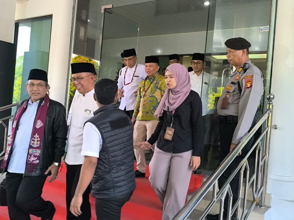 Rombongan Ketua Umum PBNU tiba menggunakan penerbangan dari Jakarta dan disambut unsur Forkopimda Provinsi Kalimantan Tengah serta tokoh daerah, kemudian melanjutkan agenda penyambutan di ruang VIP sebelum menuju lokasi kegiatan selanjutnya.