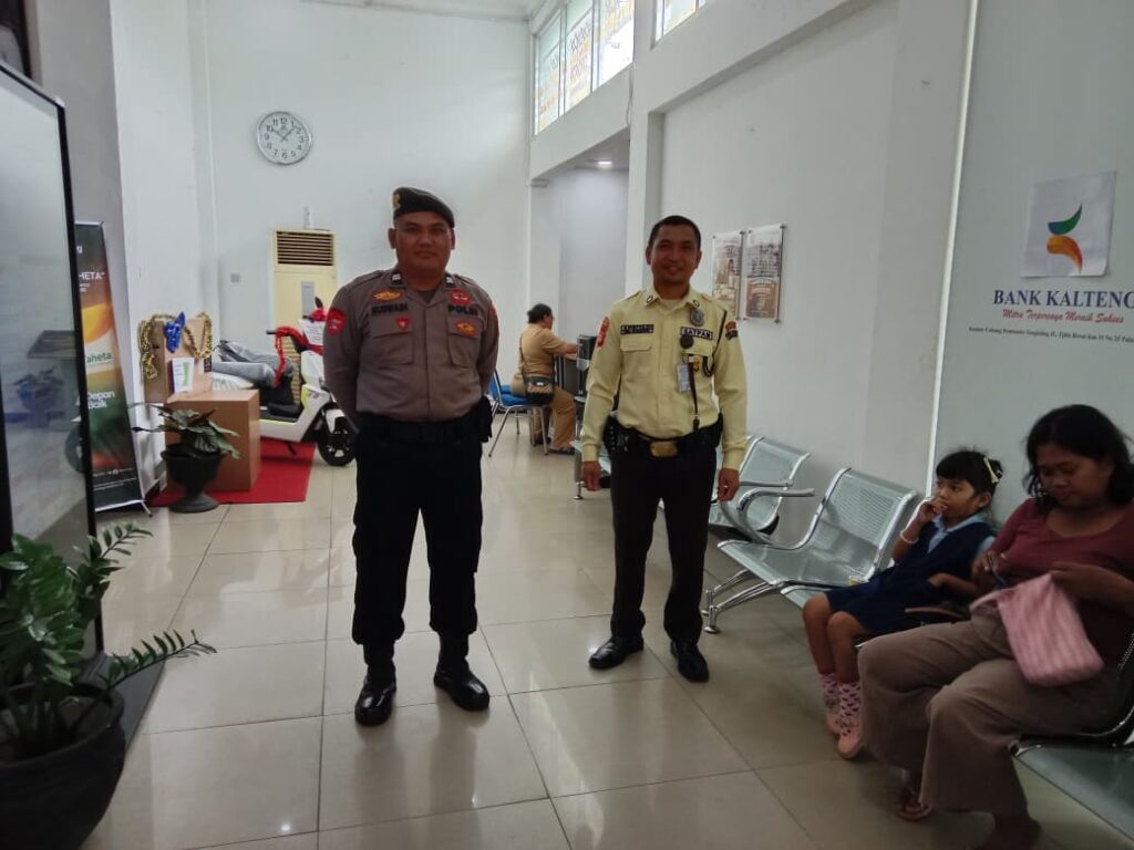 Palangka Raya – Guna menjaga keamanan dan kelancaran aktivitas perbankan, personel Satuan Pengamanan Objek Vital (Satpamobvit) Polresta Palangka Raya melaksanakan pengamanan di sejumlah kantor bank yang berada di wilayah hukumnya.