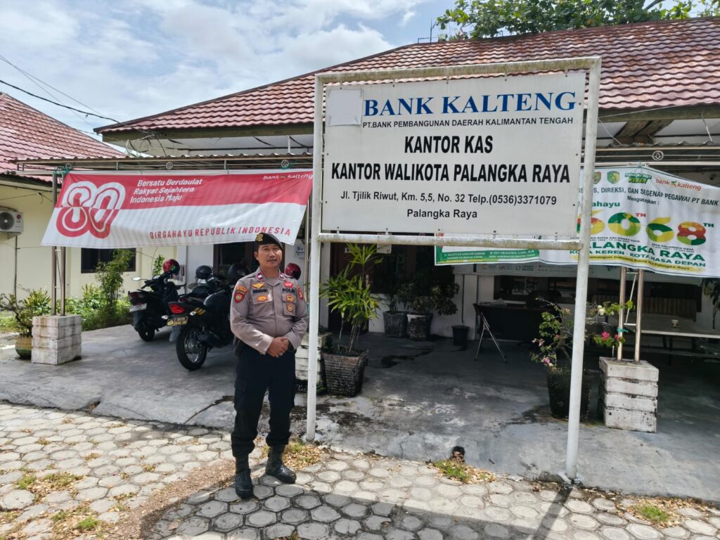 Palangka Raya – Untuk menjaga keamanan masyarakat di sektor layanan keuangan, Polresta Palangka Raya melalui Satuan Pengamanan Objek Vital (Satpamobvit) melaksanakan patroli rutin ke sejumlah kantor perbankan, Jum’at (12/12/2025).