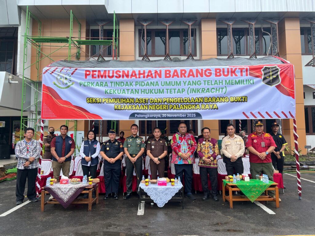 Kegiatan pemusnahan dipimpin oleh Kasi Barang Bukti Kejaksaan Negeri Palangka Raya dan dihadiri perwakilan BNN Kota Palangka Raya, Dandim 1013 Palangka Raya, Kepala Bea Cukai Palangka Raya, Pengadilan Negeri Palangka Raya serta unsur Satpol PP Kota Palangka Raya.