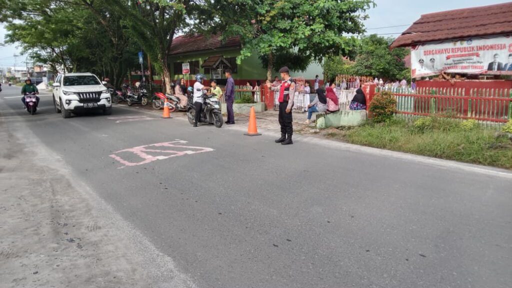 Satsamapta Polresta Palangka Raya tadi Gatur Pagi di Depan SDN 1 Bukit Tunggal - mediaborneo-one.com