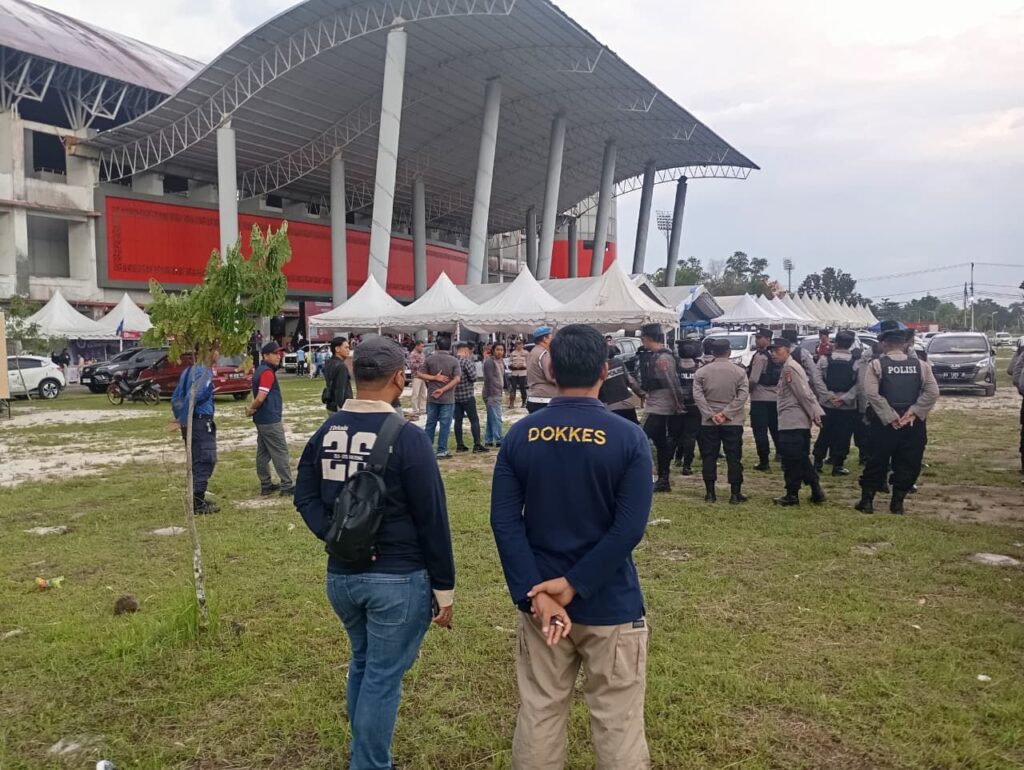 Bertempat di Gor Indoor Jl. Tjilik Riwut Km. 5, Kelurahan Bukit Tunggal, Kecamatan Jekan Raya, personel Seksi Dokkes disiagakan guna memberikan pelayanan medis, pengecekan kesehatan, serta kesiapsiagaan dalam menghadapi kondisi darurat.
