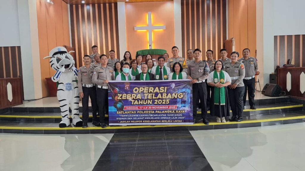 Sosialisasi Kamseltibcarlantas Satlantas Polresta Palangka Raya Bersama Jemaat GKE Sion dalam Rangka Operasi Zebra Telabang 2025 - mediaborneo-one.com