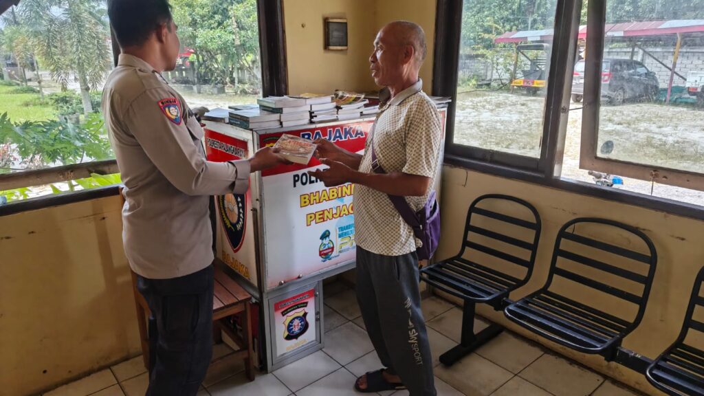Selain menyediakan bahan bacaan, kehadiran personel juga dimanfaatkan untuk berinteraksi langsung dengan warga guna mempererat kedekatan serta menumbuhkan kesadaran bersama dalam menjaga situasi kamtibmas.