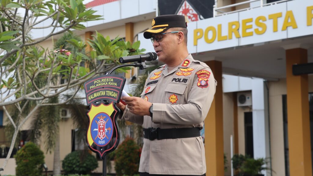 Palangka Raya – Sejumlah atensi disampaikan oleh Wakapolresta Palangka Raya, Polda Kalteng, AKBP Moch. Isharyadi Fitriawan, S.I.K., M.M. saat memimpin Upacara Kesadaran Nasional yang dilaksanakan kesatuannya.