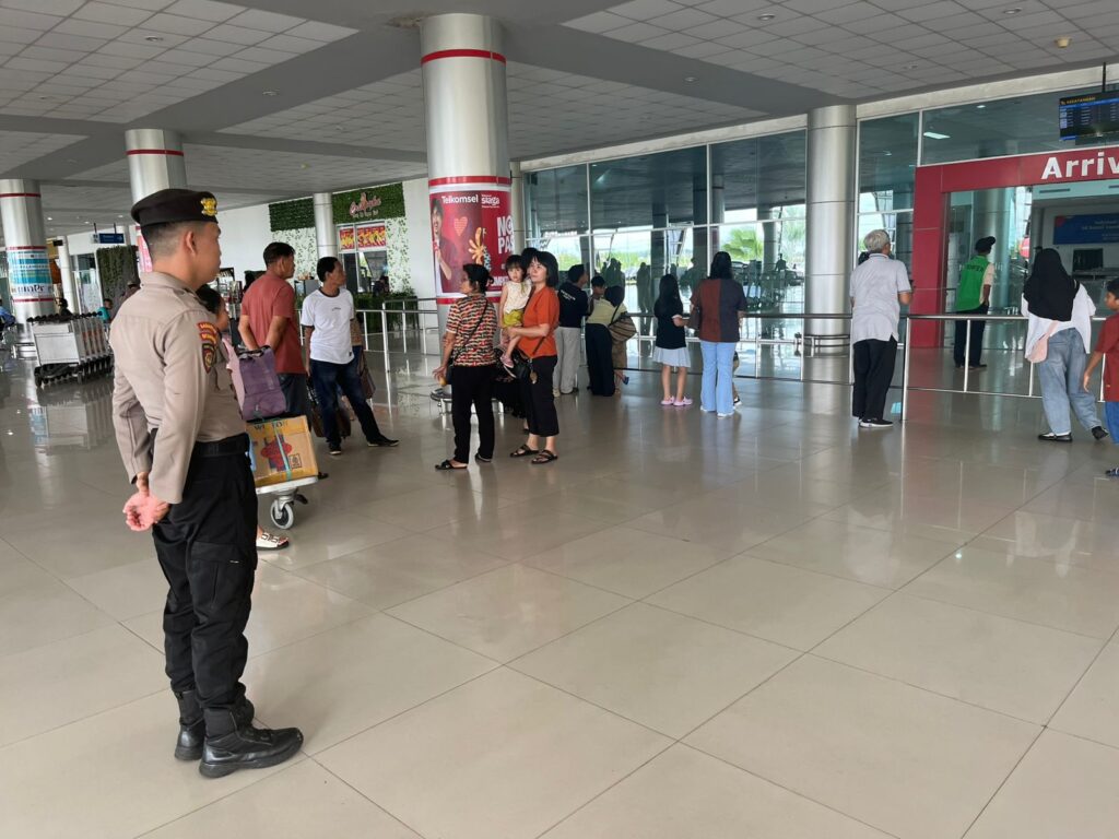 Kegiatan tersebut difokuskan pada pemantauan area keberangkatan dan kedatangan, pemeriksaan situasi di sekitar pintu masuk bandara, serta koordinasi dengan petugas keamanan setempat untuk menjamin kelancaran arus penumpang dan barang.
